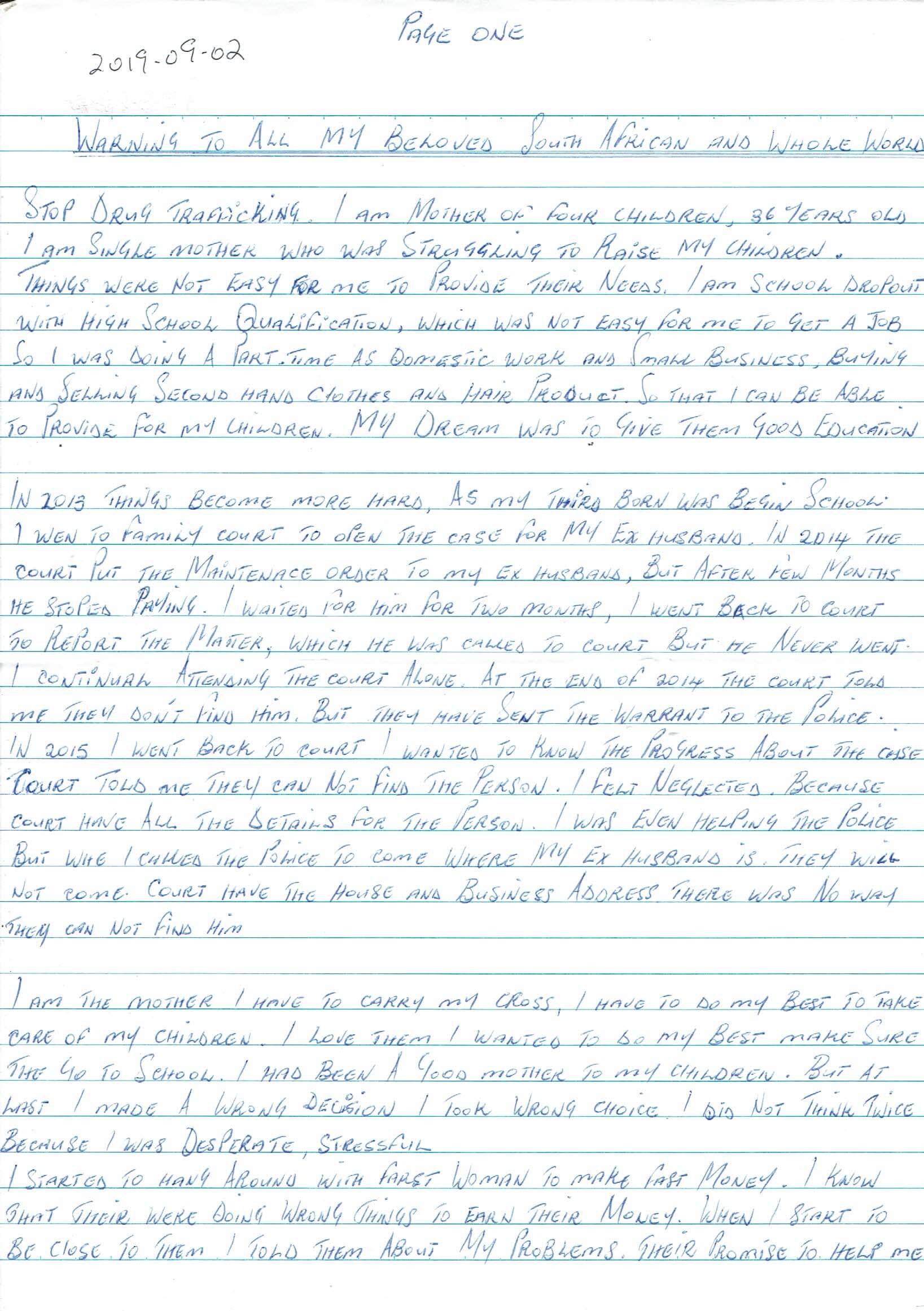 I am writing this because I can see there are some South Africans who are still coming. STOP drug trafficking. No matter what problem you are facing there are other ways you can earn money no matter how small.