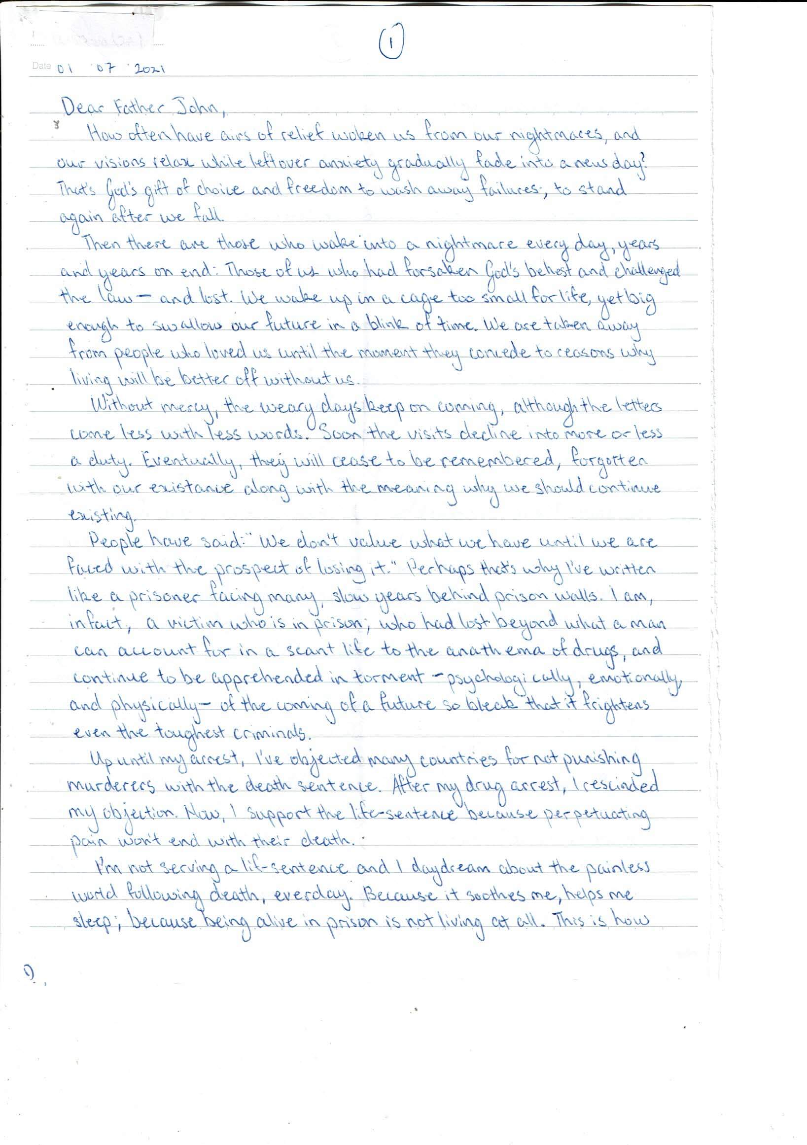 Up until my arrest, I had objected to many countries for not punishing murderers with the death sentence. After my drug arrest, I rescinded my objection. Now I support the life sentence because perpetrating pain won’t end with their death.
