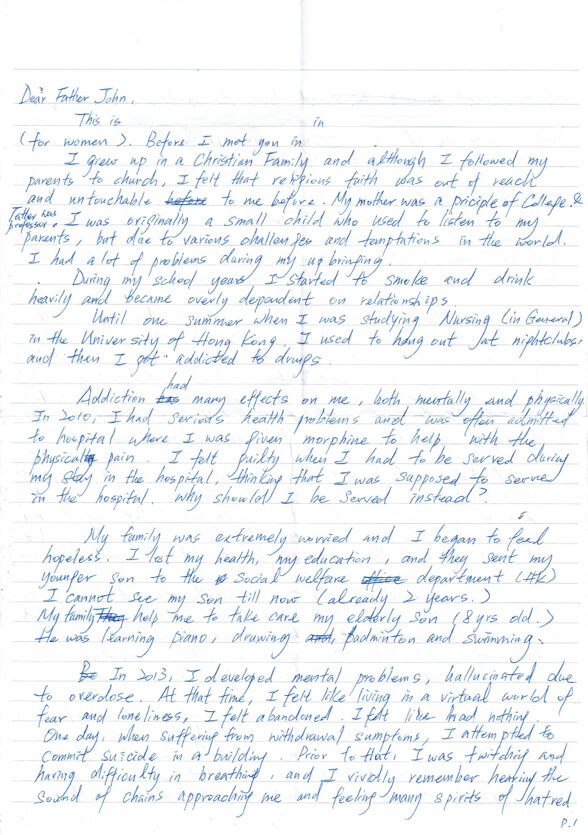 While studying for a Nursing degree at the University of Hong Kong, I developed a heavy dependence on smoking, drinking, and relationships with men. One summer, while partying at a nightclub, I tried drugs and soon became addicted.