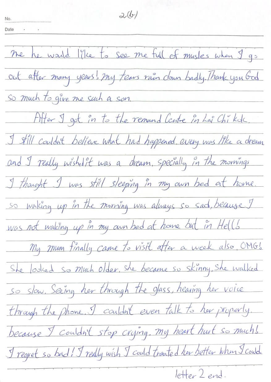 After being remanded it all felt like a dream. I yearned for my bed at home, waking up each morning in jail. A week later, my mom visited. She seemed older, skinnier, and slower. I couldn’t stop crying at the sight of her through the glass.