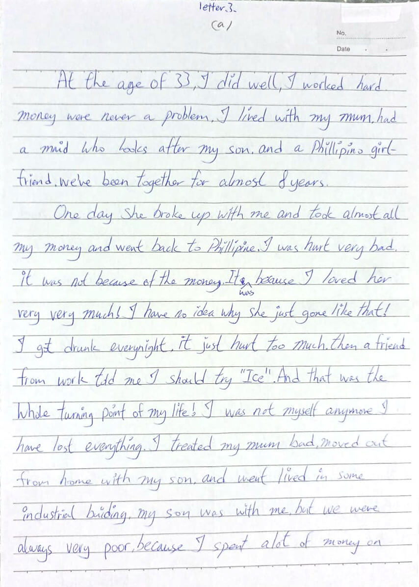 At 33, I had a stable life. I lived with my mom, had a maid for my son, and a Filipino girlfriend of eight years. But when she left me, taking most of my money, I was devastated. I turned to alcohol and eventually tried ICE, a drug a work friend suggested. This marked the downturn of my life. I treated my mother poorly, moved into an industrial building with my son, and squandered money on drugs.