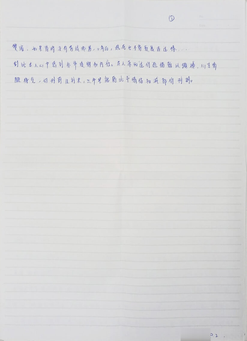 本人亦有為將來服刑完畢後的日子作考慮,因而報讀了一些遙距課程,以培養一技之長,幫助將來尋求更多工作機會,為將來重投社會作好準備。本人會好好利用這段服刑的時間來增值自己,以及規劃未來,並作充足準備,面對將來的生活。