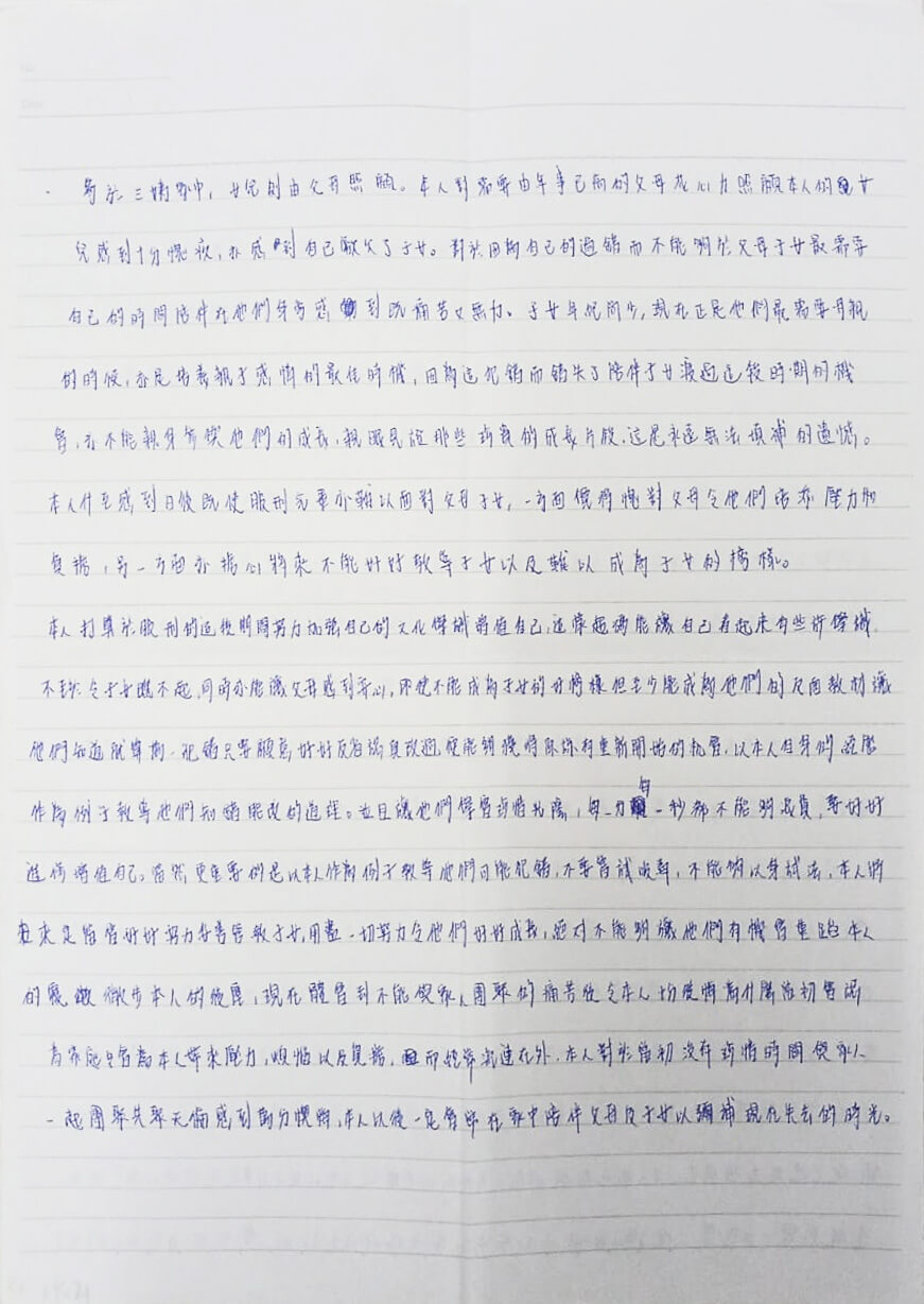 本人只希望這次服刑完畢後,能回到家中好好陪伴和照顧父母。祈求能補償這段時間未能盡孝道,亦盼望能早日回歸正道,找到一份正當工作以正當收入湊大一雙兒女,並且讓他們學習珍惜光陰,每一分每一秒都不能浪費,要好好進修增值自己。當然更重要的是以本人作為例子教導他們可能犯錯,不要嘗試吸毒,不能夠以身試法,本人將來一定會好好努力妥善管教子女,用盡一切努力令他們好好成長,絕對不能夠讓他們有機會重蹈本人的覆轍,本人的後塵。
